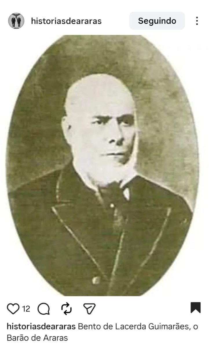 As imagens a seguir foram retiradas de rede social/instagram (@historiasdeararas), cujo rico acervo disponibilizado por Faber de Azevedo recomendamos conhecer.